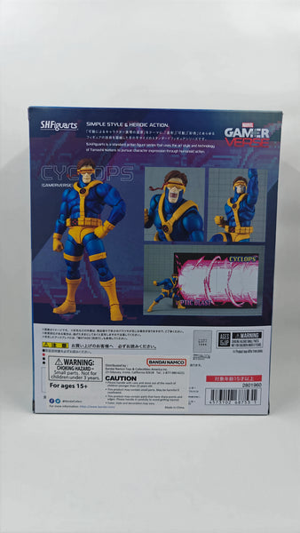 Cyclops, the first leader of the X-Men, from Marvel's Gamerverse joins S.H.Figuarts! Various poses can be reproduced using the movable structure unique to S.H.Figuarts. Recreate Cyclops' Optic Blast at three different strengths using multiple parts and the included mount parts! There are also plenty of interchangeable facial parts, including one that recreates the Optic Blast leaking from the visor. Cyclops measures approximately 6-inches tall.
